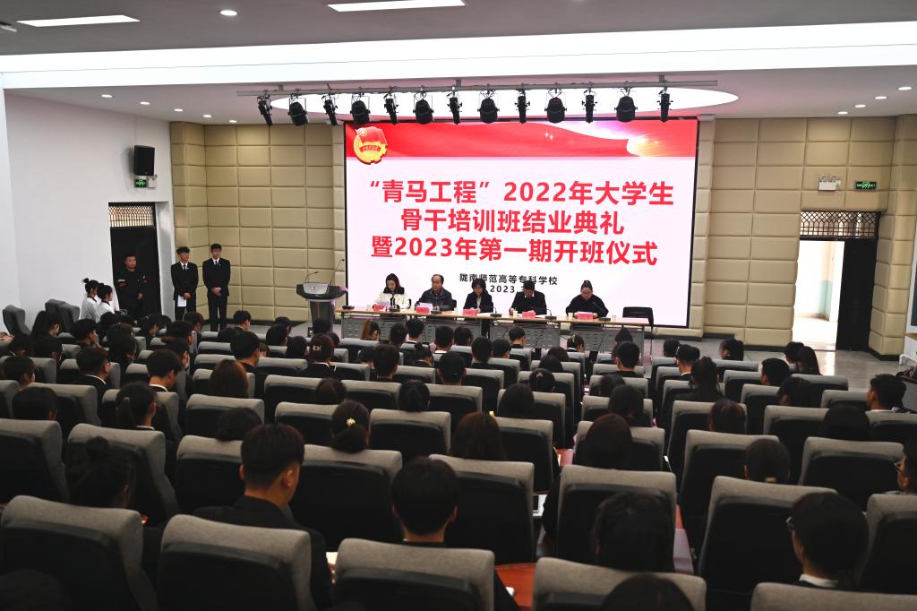 会上,团委负责人兰青宣读了《关于2022年第1期“青年马克思主义者培养工程”大学生骨干培训班高磊等85名学员结业的决定》《关于举办2023年第1期“青年马克思主义者培养工程”大学生骨干培训班的通知》。