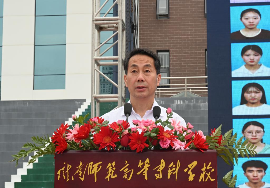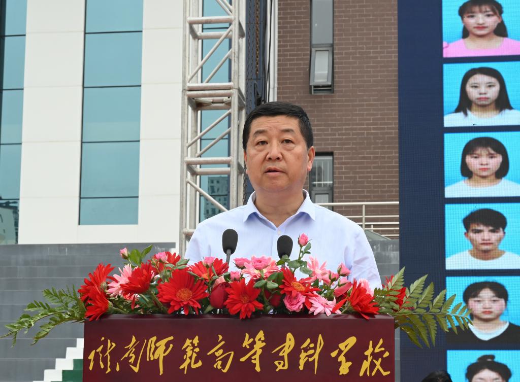 最后,李艳红致辞。她代表学校向圆满完成学业的各位同学致以最热烈的祝贺和最衷心的祝福,并深情寄语全体毕业生:一是定当志存高远,心怀家国。如今,一大批陇师学子将个人的向往和追求同社会的需要和人民的利益相融合,让青春之花绽放在祖国最需要的地方,彰显了陇师人在农村扎根支教的理想和服务于乡村振兴的家国情怀。同学们要传承陇师精神,志存高远,主动把自己的小我融入祖国的大我、人民的大我之中,在助力国家富强、民族复兴的伟大事业中更好地实现人生价值、升华人生境界。二是铭记躬身实践,勠力拼搏。同学们要把学习目的放在联系实际上,将学到的知识用在破解难题上,真正做到学践互促、学以致用,在实践中磨炼意志、增长才干,在学思践悟中不断提升驾驭复杂局面的能力,在攻坚克难中检验学习的成效和成果,在实践磨炼中补齐短板,在知行合一中提升综合实力。三是追求强健体魄,诗意生活。新冠疫情让我们明白健康弥足珍贵,有了强健的体魄,贡献社会,报效祖国。同学们要把体育锻炼作为一种生活方式,养成自觉、形成习惯,在日复一日、坚持不懈地体育锻炼中,锤炼坚强意志,塑造健全人格,磨砺奋斗精神,养成坚韧不拔、团结友爱、勇于拼搏、开拓进取的精神品质。大家要勇敢肩负起时代赋予的重任,志存高远,脚踏实地,努力在实现中华民族伟大复兴的中国梦的生动实践中放飞青春梦想,努力成长为堪当民族复兴重任的时代新人。(文图/李 曼)