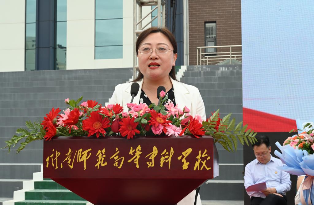 校友代表、徽县实验小学校长张丽表达了对母校的感恩与祝福,分享了自身的学习和工作感悟,并向同学们送上真挚祝福,寄语大家要以真诚和坦然面对世界,做自己的主人;以善良和理性守护自己,做一个灵魂纯洁的人;以美好和科学走向未来,做一个担当有为的人,带着陇师人的烙印,肩负陇师人的责任和担当,踏上新征程、开启新篇章。