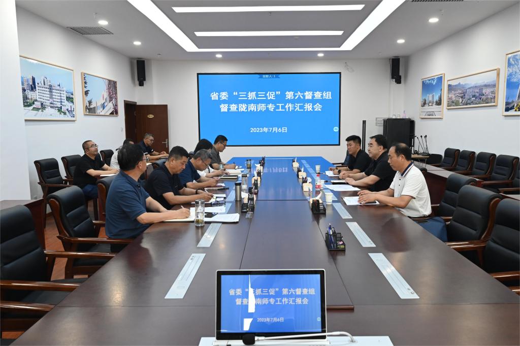 7月6日,省委“三抓三促”第六督查组组长、省委教育工委专职副书记张晓东一行来beat365督导检查“三抓三促”行动开展情况以及初等教育学院、学前教育学院、电子商务学院及重大项目推进情况。