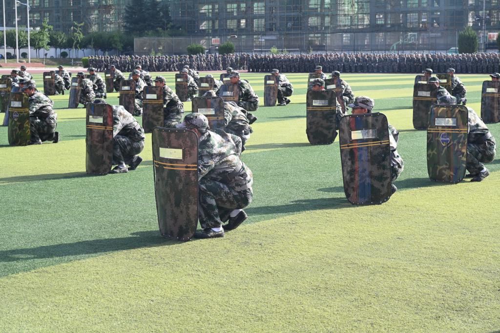 分列式军训会操表演结束后,文化队列、刺杀操、擒敌、警棍盾牌操、战术和教官倒功操方阵轮番上阵亮相表演。嘹亮的喊声在操场上此起彼伏,久久回荡,每套动作都迅速有力,一招一式尽现陇师学子的豪迈气魄、展现了新一代陇南师专学子奋发昂扬的斗志和永不放弃的追求,现场高潮迭起,掌声雷动。