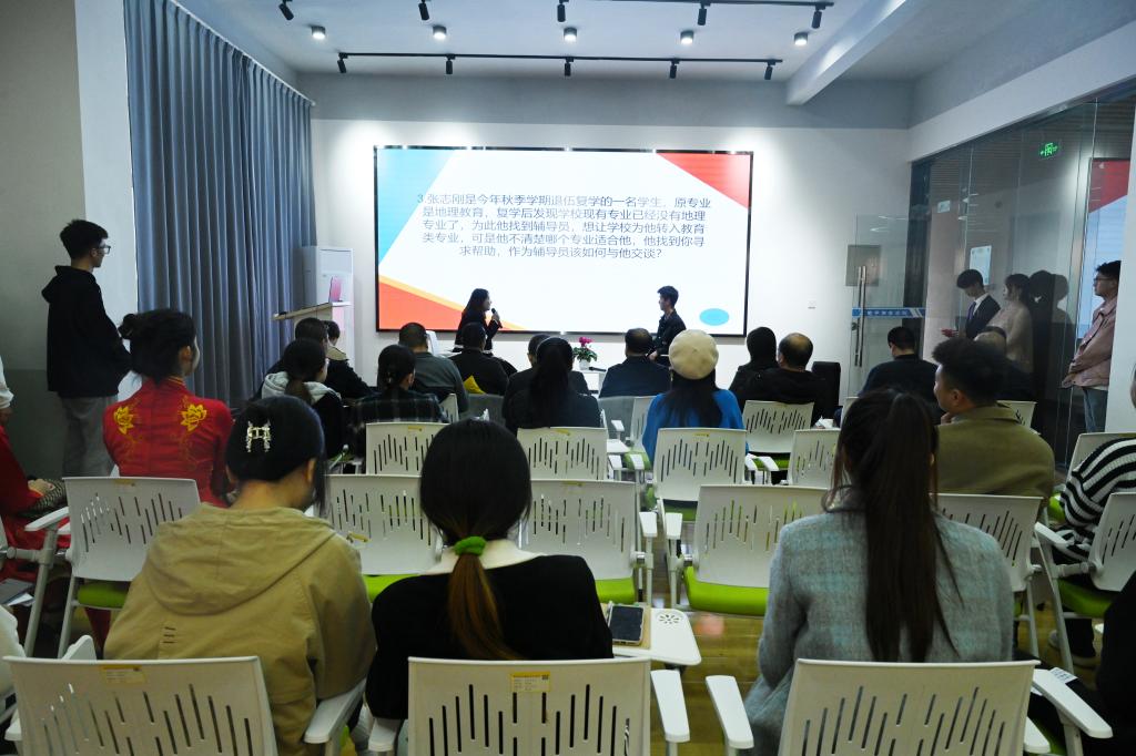 通过初赛,有11名辅导员进入了决赛。决赛参照省赛比赛形式,分为案例分析和谈心谈话两个环节,主要考察辅导员综合运用理论分析问题、研判问题、解决问题的能力,以及辅导员对学生特征、学生成长成才规律的了解把握、对学生的教育引导能力、解决理论困惑和实际问题的能力等。
