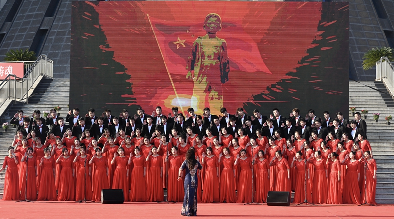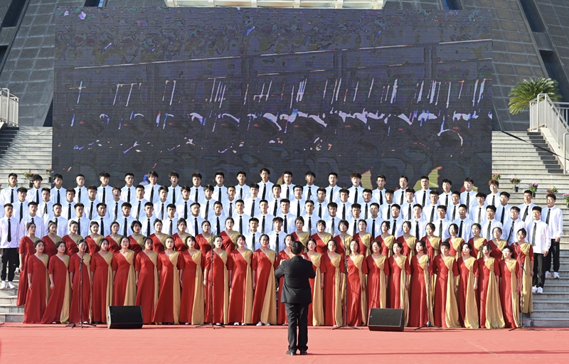 一首首经典爱国歌曲,在师生们的用心演绎下勾勒出一幅幅美丽的山河画卷,讴歌了祖国改革开放以来所取得的巨大成就,抒发了青年学子的爱党爱国、艰苦奋斗的进取精神。比赛自始至终贯穿着感怀和奋进的基调,一首首歌曲时而深情追忆,时而激情澎湃,整场比赛精彩纷呈、高潮迭起,展现了师生良好的精神风貌。嘹亮的歌声响彻校园,博得阵阵掌声。