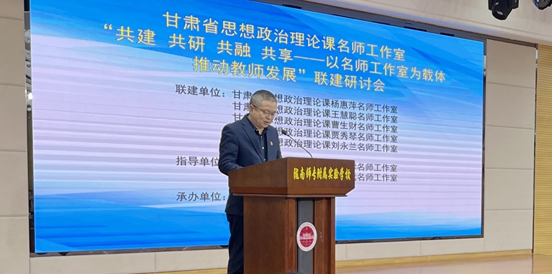 11月10上午,党委书记张弢参加附属实验学校“甘肃省思想政治理论课名师工作室”联建研讨活动,并在开幕式上致辞。