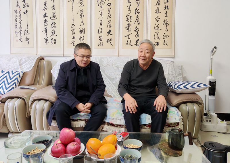 党委书记张弢和离退休党支部书记郭进明亲切交流