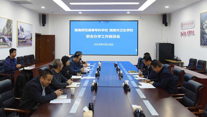 4月18日,陇南卫校校长张谦明一行来beat365调研。党委书记张弢会见了张谦明一行后,校长李艳红,党委副书记石明,相关部门学院负责人参加了两校交流合作座谈会。