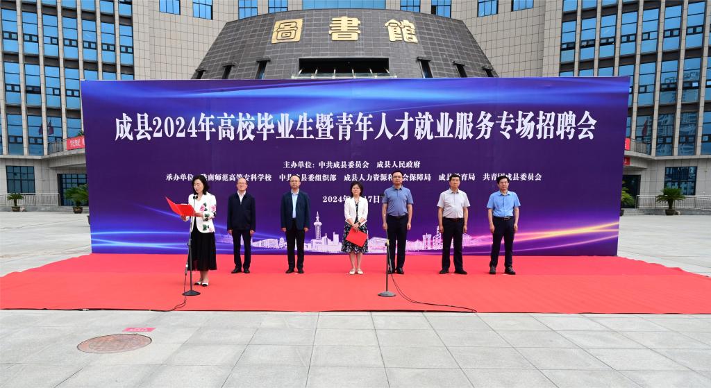 赵彦凯宣布:成县2024年高校毕业生暨青年人才就业服务专场招聘会开幕。