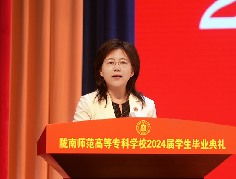 教师代表学前教育学院张益琴教授在发言中向2024届全体毕业生表示祝贺,勉励同学们顺应时代潮流,做走在前列的奋斗者;时刻不忘学习,做终身学习的求知者;敢于坚持梦想,做志向远大的追梦者。希望同学们秉承“坚苦奋达”的陇师精神,锐意进取,勇攀高峰,以海纳百川的胸怀去拥抱世界,拥抱未来,千帆历尽,破茧成蝶,早日实现自己的梦想。