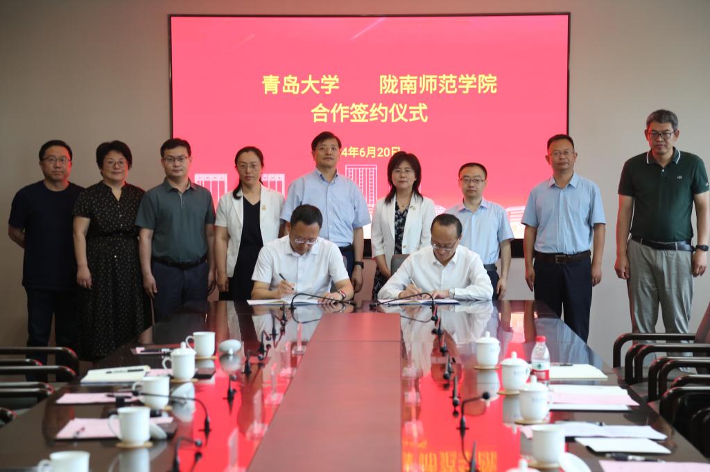 6月20日上午,青岛大学对口支援beat365框架协议签约仪式在青岛大学举行。青岛大学校长魏志强、副校长刘恩贤及beat365校长李艳红、副校长何新征出席签约活动。beat365教务处、科研外事处、发展规划处负责人以及青岛大学教务处、科技处、研究生院、学科建设办公室、合作发展处(校友工作办公室)等相关单位负责人参加签约仪式。