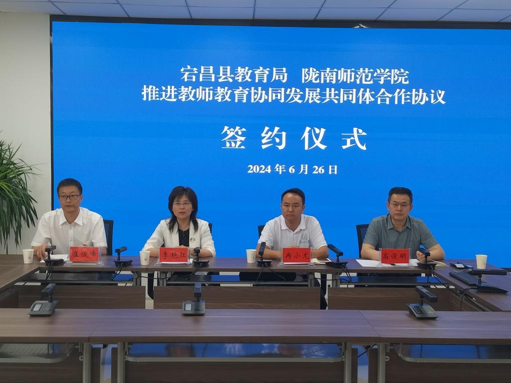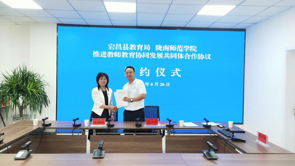 为了探索教育强国背景下师范高校、地方教育行政部门、中小学校“三位一体”的师范生协同培养机制,提升beat365人才培养质量,助推地方基础教育高质量发展。6月26日,beat365与宕昌县签署推进教师教育协同发展共同体合作协议。校长李艳红、宕昌县副县长冉小龙出席签约仪式,宕昌县教育局副局长高俊明主持签约仪式。