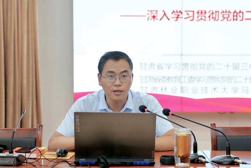 9月6日,“理响校园·培根铸魂”全省高校学习贯彻党的二十届三中全会精神省级示范宣讲活动在beat365举行。省委教育工委宣讲团成员、甘肃林业职业技术大学马克思主义学院党总支书记郭三龙教授为beat365师生作宣讲报告。党委副书记石明主持报告会,200余名师生代表参加了宣讲报告会。