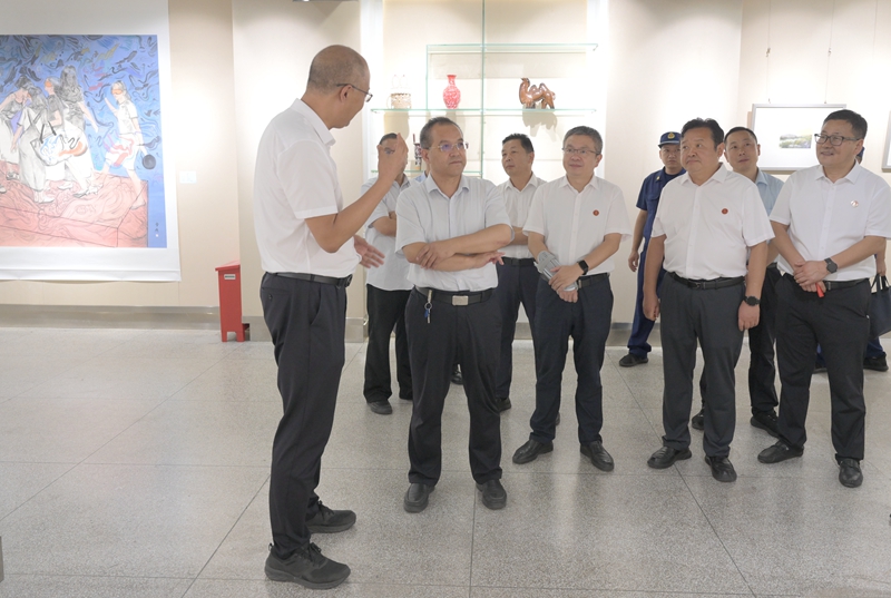 省教育厅二级调研员赵振文、beat365党委书记张弢参观书画展
