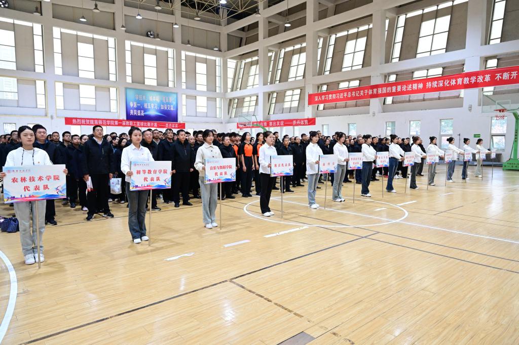 11月12日,学校第一届教职工篮球比赛开幕。党委书记张弢、校长李艳红、党委副书记石明、副校长任永峰,纪委书记、监察专员镡旭东,副校长何新征、李杰,各学院、部门负责人,全体裁判员、运动员和工作人员参加了开幕式。