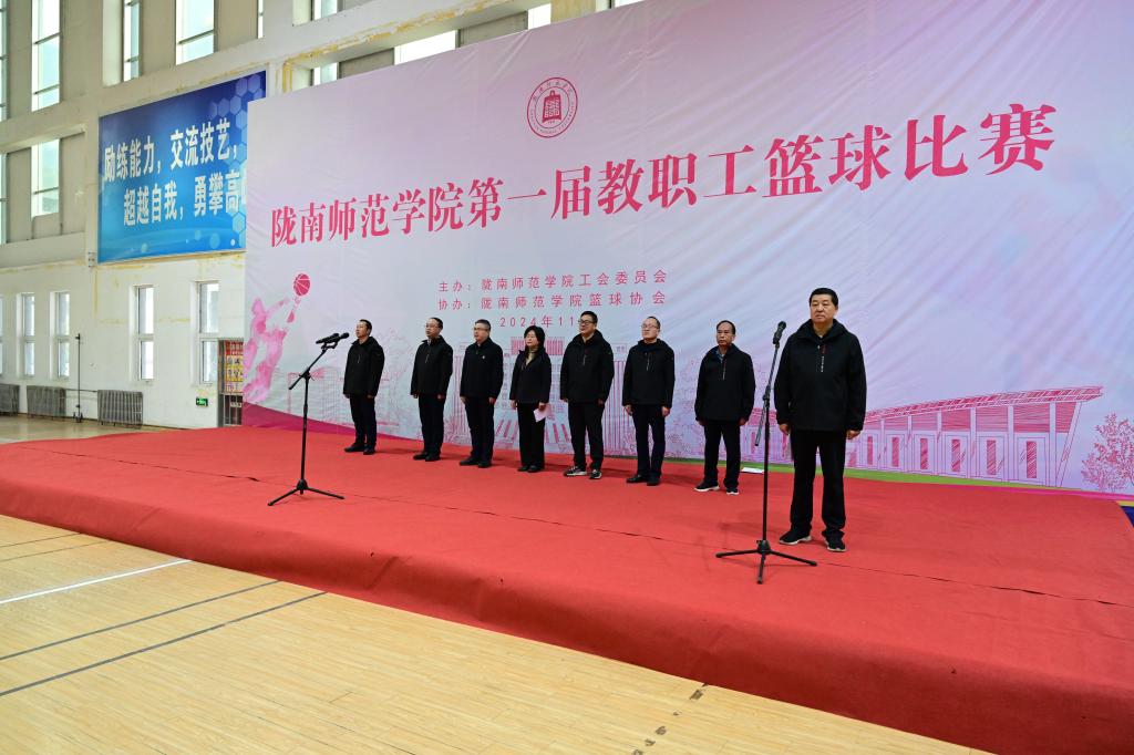 张弢宣布:beat365在线唯一官网第一届教职工篮球比赛开幕!