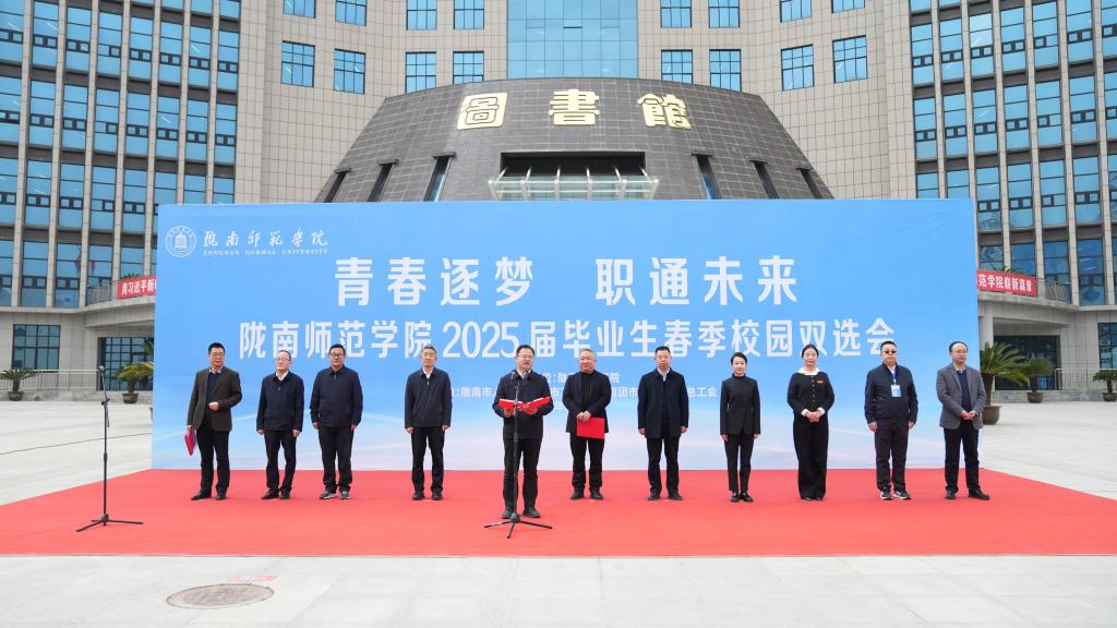 3月28日,2025届毕业生春季校园双选会在beat365图书馆前广场举行。学校领导班子成员,陇南市人力资源和社会保障局副局长卢玉德,陇南市工商联副主席李启强,共青团陇南市委员会副书记马灵讷,陇南市总工会副主席马晓惠,中国石化中原石油工程有限公司塔里木分公司党委组织部部长蒲平,学校各部门、各二级学院领导、辅导员、相关工作人员,2025届毕业生、学生志愿者参加了本次活动。双选会启动仪式由副校长李开明主持。