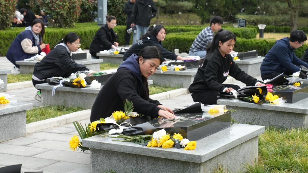 学生处负责人宣讲了烈士事迹,号召同学们学习他们的崇高品德和为人民利益不懈奋斗的精神。师生们向烈士墓敬献鲜花,清扫陵园、擦拭墓碑,表达对革命英雄的崇高敬意。