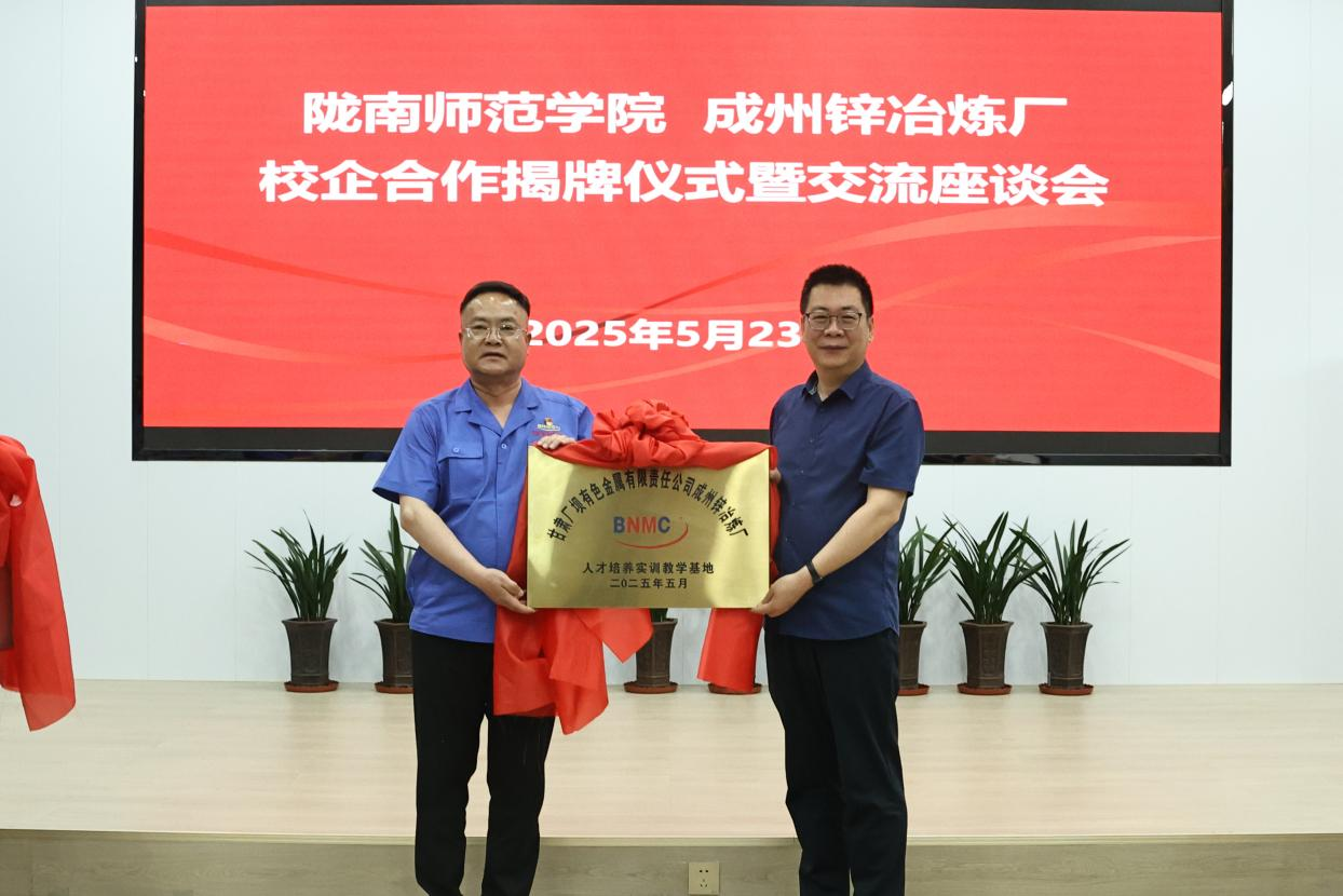 机电工程学院院长赵卫红汇报了今年职工理论培训的工作方案,培训教师张丹丹作了交流发言。校企双方互相颁发了“beat365在线唯一官网-教学科研实践基地”和“成州锌冶炼厂人才培养实训教学基地”匾牌。