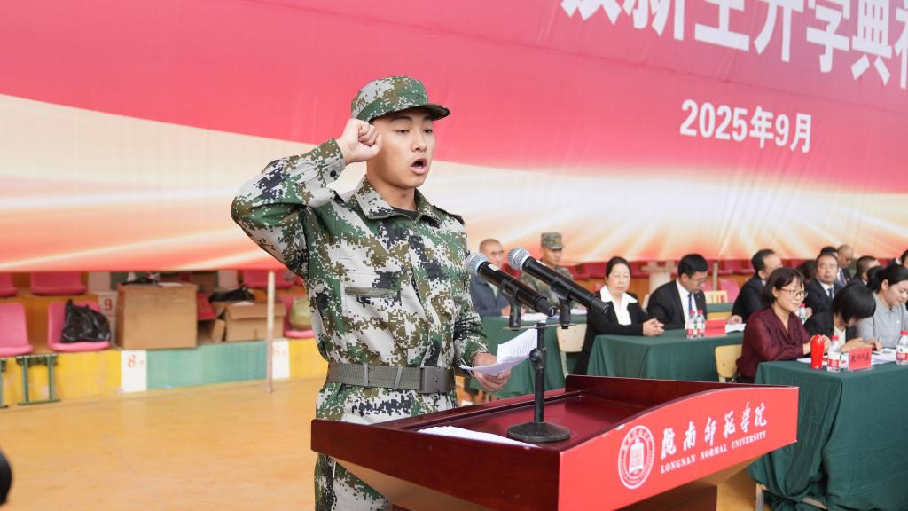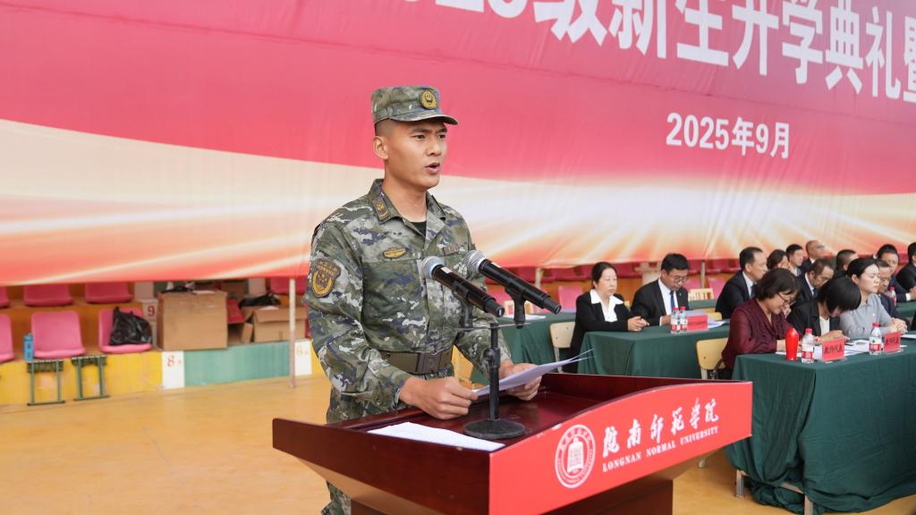 9月7日上午,学校举行2025级新生开学典礼暨军训动员大会。党委书记向君,校长李艳红,纪委书记、监察专员郭省军,副校长何新征,党委委员李杰,武警陇南支队执勤一大队政治教导员郭超,学校相关处室负责人,各学院党总支书记、院长、分管领导,2025级新生辅导员、班主任及全体新生参加了大会。大会由副校长李开明主持。