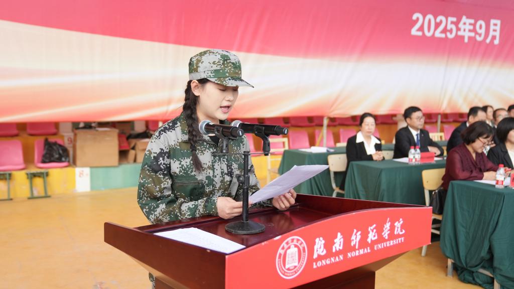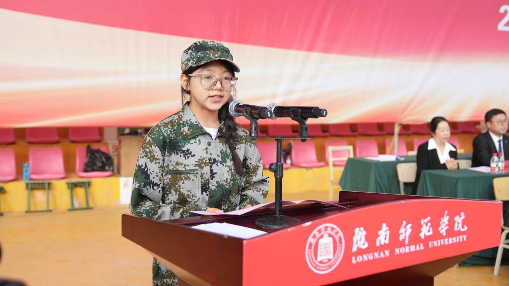 专科生代表、外国语学院小学英语教育专业杨小芳表示,将坚决服从命令,刻苦投入训练,注重团队合作,将军训中好的作风和习惯带到大学生活中,争做出彩陇师人。