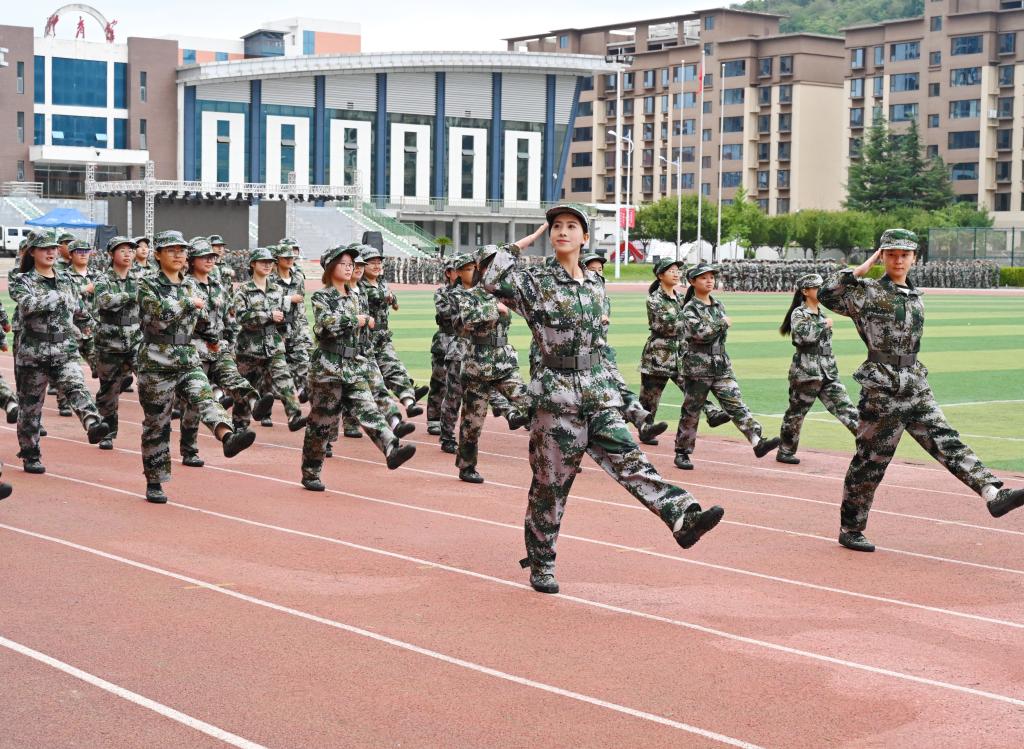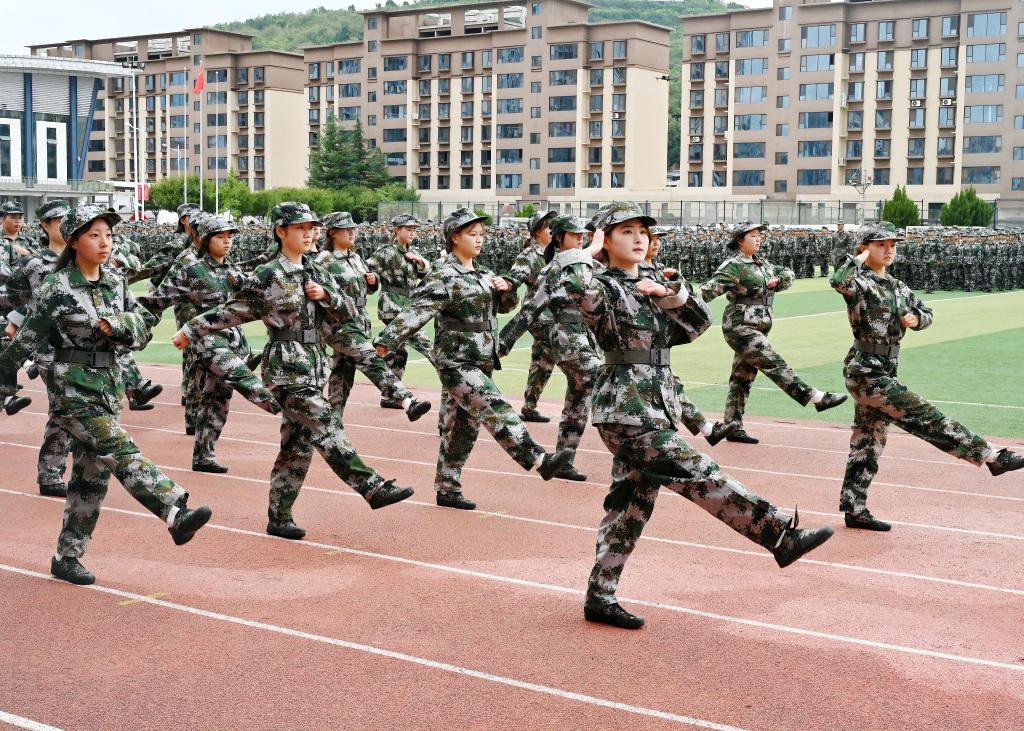 伴随着高亢激昂的乐曲,分列式表演正式开始。方队迈着铿锵有力的步伐,喊着嘹亮的口号,以整齐划一的动作依次通过主席台,接受学校领导与承训单位领导的检阅。同学们挺拔的身姿、坚毅的眼神、威武飒爽的英姿,充分展现了军训成果,赢得了现场与会人员的阵阵掌声。