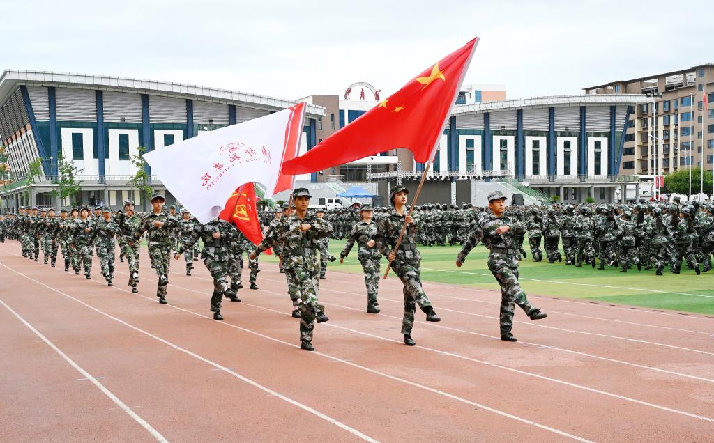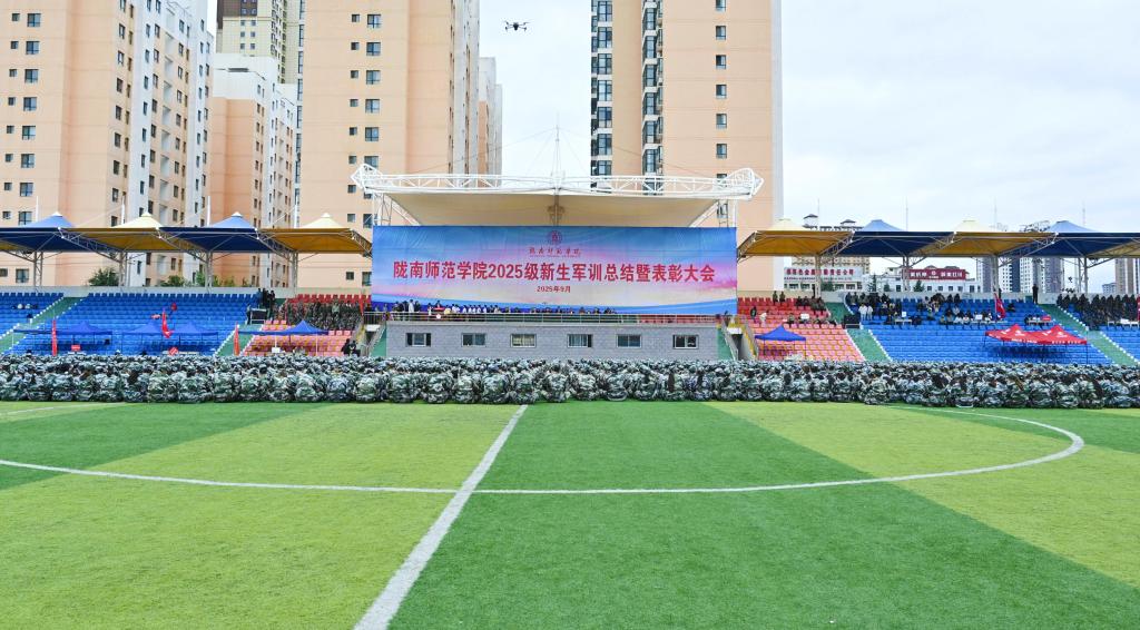 9月20日,学校召开2025级学生军训总结暨表彰大会。校长李艳红,党委副书记焦鹏宁,纪委书记、监察专员郭省军,副校长李开明,党委委员石明、李杰,武警陇南支队执勤一大队政治教导员郭超出席大会。承担军训任务的武警陇南支队全体教官,各学院党总支书记、院长,相关处室负责人,2025级新生辅导员、班主任,以及2025级全体新生参加大会。大会由副校长镡旭东主持。