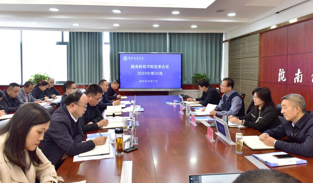 会议要求,全校要把学习宣传贯彻《习近平谈治国理政》第五卷作为首要政治任务,坚持系统贯通学深悟透,健全常态化教育体系,深化理论武装系统性、实效性,推动党的创新理论深植师生思想根基。要深化宣传阐释,立足课堂主阵地创新“三进”工作,深化课程思政建设,针对师生群体开展分众化、互动化宣讲,推动党的创新理论转化为鲜活育人资源。要强化学用转化,紧扣学校“十四五”收官和“十五五”规划制定,引导师生以党的创新理论指导学科建设、教学科研及管理服务实践,重点围绕支持beat365在线唯一官网以评促建、服务陇南经济社会发展等核心任务,对标2025年工作要点狠抓落实,确保年度目标高质量完成,奋力开创学校内涵式发展新局面。