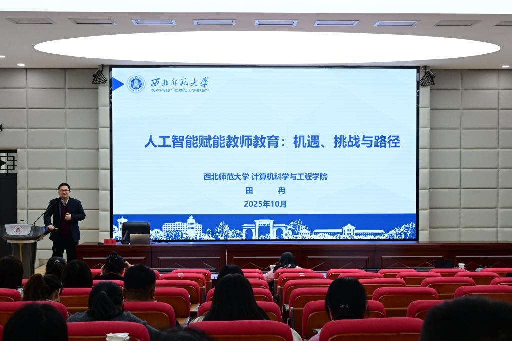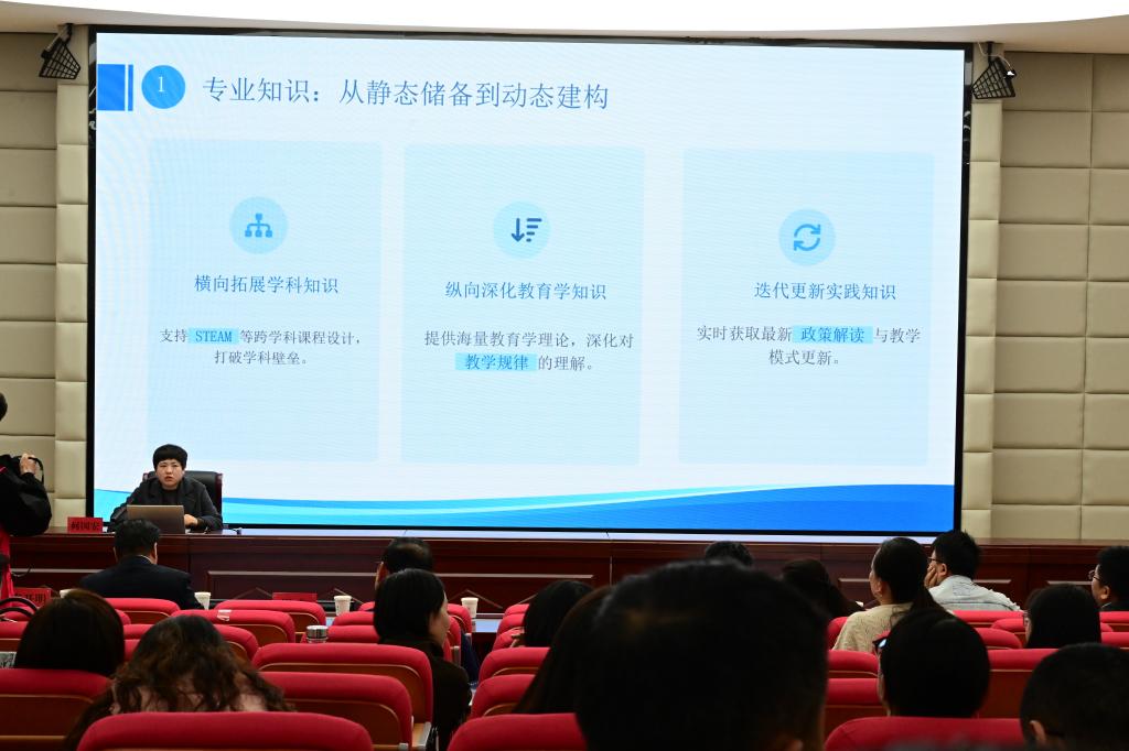 学术报告内容涵盖人工智能重构课堂教学范式、赋能师范专业课程智慧升级、支持教师精准教研与个性化发展等多个前沿领域。与会专家通过理论研讨与实践案例剖析,系统梳理了智能技术在教师教育中融合应用的现实路径与潜在挑战,并就如何构建“人工智能+教师教育”新生态、强化教师数字素养、创新智能化评价机制等关键议题提出了具有前瞻性与可操作性的对策建议。