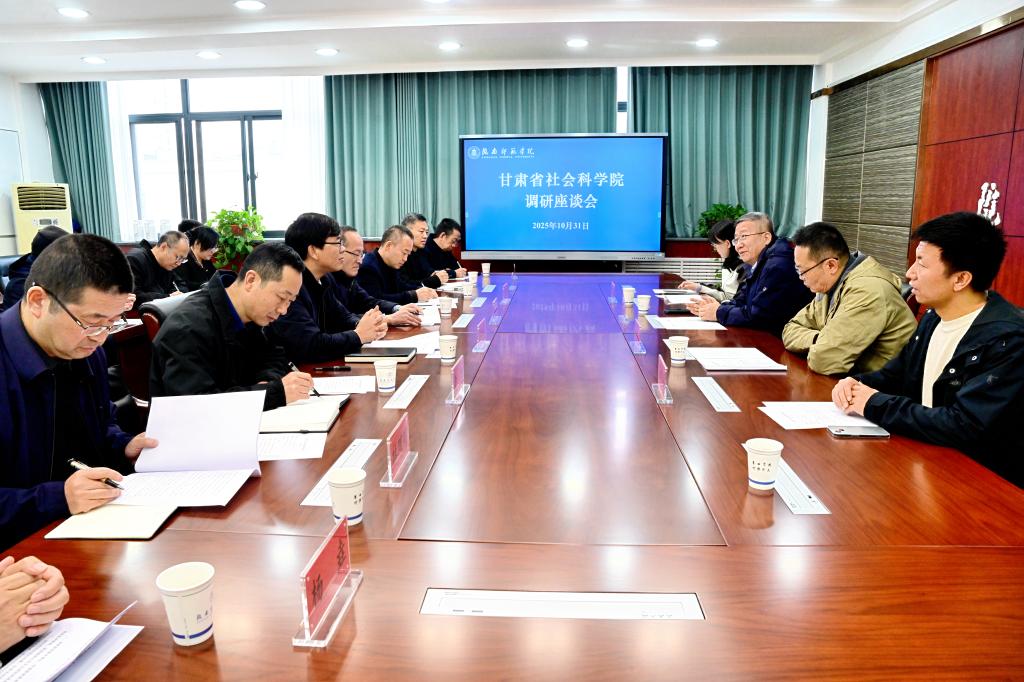 座谈会上,陈永胜介绍了此次调研的背景、目的和意义。焦鹏宁对陈院长一行的到来表示欢迎,并简要介绍了学校基本情况。他希望双方共同寻找合作契合点,建立健全常态化合作机制,拓展合作广度与深度,实现更高水平的协同发展,共同为助推我省哲学社会科学繁荣发展与甘肃省现代化建设谱写校院合作共赢新篇章。何新征汇报了学校教学改革、科研创新等方面情况。