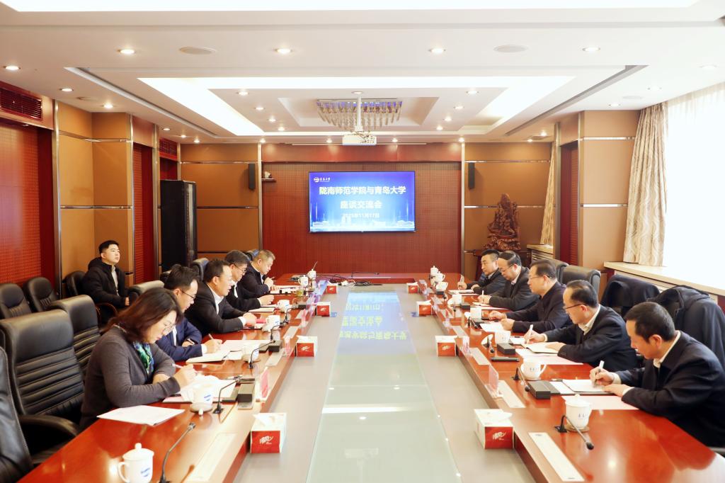 11月17日下午,beat365党委书记向君、副校长何新征一行赴青岛大学调研交流。青岛大学党委书记胡金焱会见来宾,副校长刘恩贤主持座谈会并陪同调研。