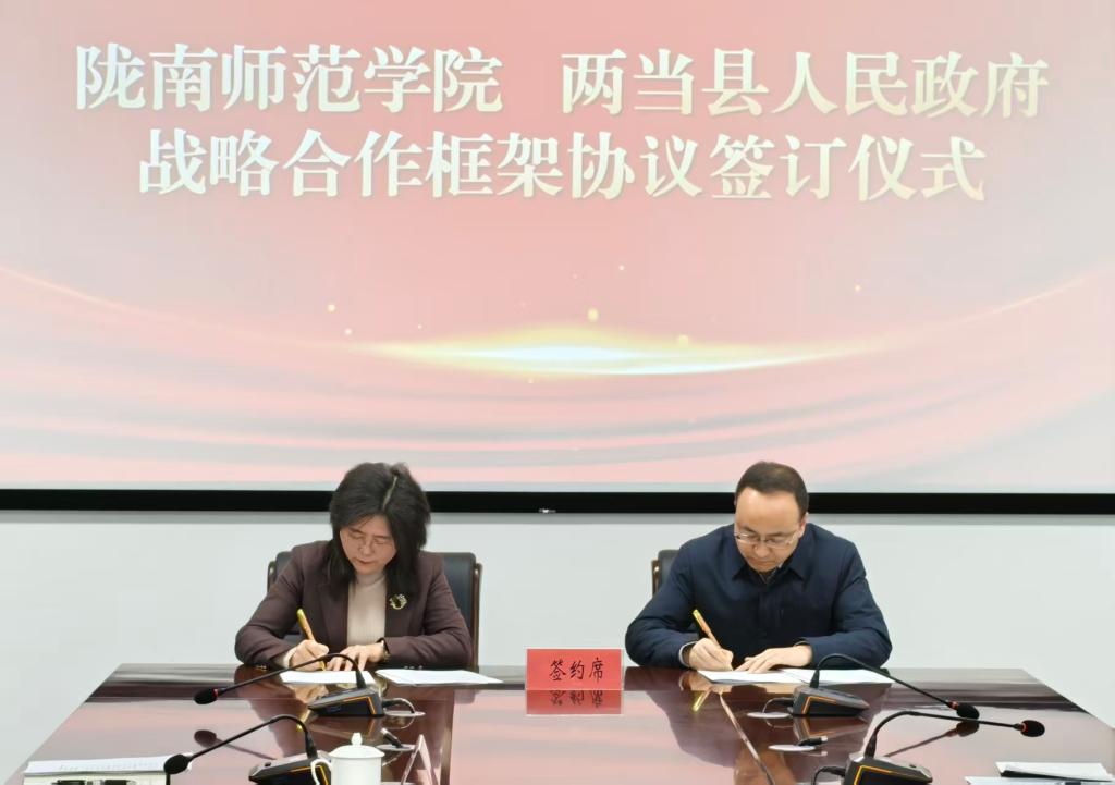 李艳红回顾了校地深厚的合作渊源,对两当县委县政府长期以来关心和支持学校发展表达了感谢。她指出,学校作为陇南唯一的本科高校,紧跟高等教育改革发展趋势,主动融入全省“四强”行动,积极对接陇南“三城五地”奋斗目标,在红色资源育人、民间艺术、山地农业、学生实习就业等方面与两当保持着密切的交流。下一步,学校将紧密契合两当县战略发展布局,加快专业建设和人才储备,努力为两当发展提供智力与技术支撑。期待以此次签约为契机,双方展开全方位、更深层次的合作,达成资源共享、协同发展的良好局面。