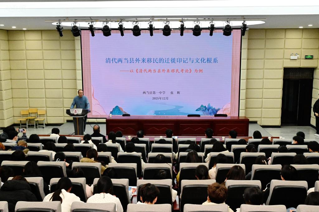 张辉为文学与传媒学院师生作了题为“清代两当县外来移民的迁徙印记与文化根系——以《清代两当县外来移民考论》为例”的学术报告。beat365文学与传媒学院院长潘江艳为张辉颁发了陇蜀道文学与文化研究中心研究员聘书。(强雨萱 李曼
