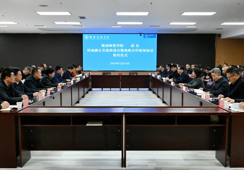 12月16日,学校与成县校地融合发展座谈会在beat365召开。学校党委书记向君主持会议并致辞,成县县委书记王辉出席会议并讲话。党委副书记、校长李艳红与成县县委副书记、代县长冉彦清分别代表双方签署战略合作框架协议。成县人大常委会主任吴秀、政协主席纳康清,学校党委班子成员,成县相关单位和学校各处室、各学院负责人参加了会议。
