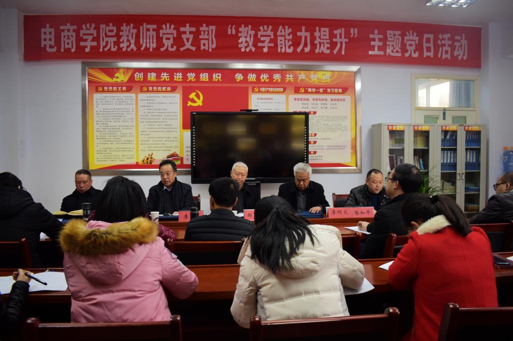 12月11日下午,电子商务学院教师党支部在学院党员活动室开展“党建+教学能力提升”主题党日活动。学院党总支书记高峰、院长石明以及全体党员、教师参加了活动。