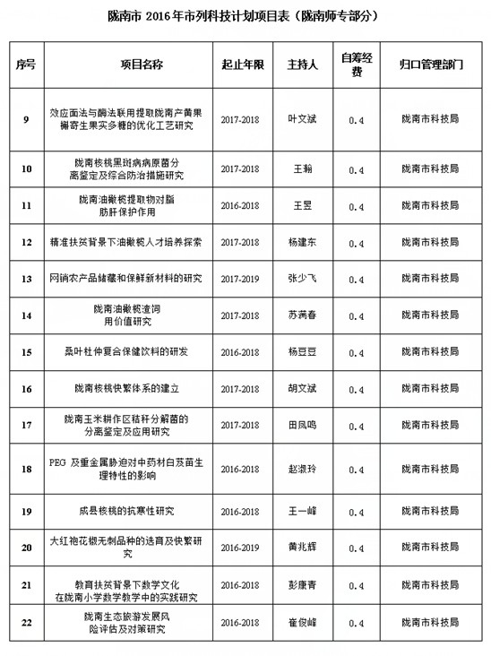 日前,陇南市科技局公布了2016年科技指导性计划项目立项名单。beat36521项科技项目获准立项,。