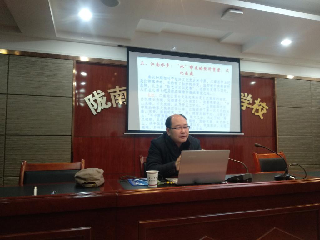 11月21日,西北师范大学文学院冉耀斌教授在办公楼三楼会议室作了题为《江南文化与经典诗歌》的学术报告。文学与传媒学院100多名师生聆听了报告。报告会由文学与传媒学院院长鲁建平主持。