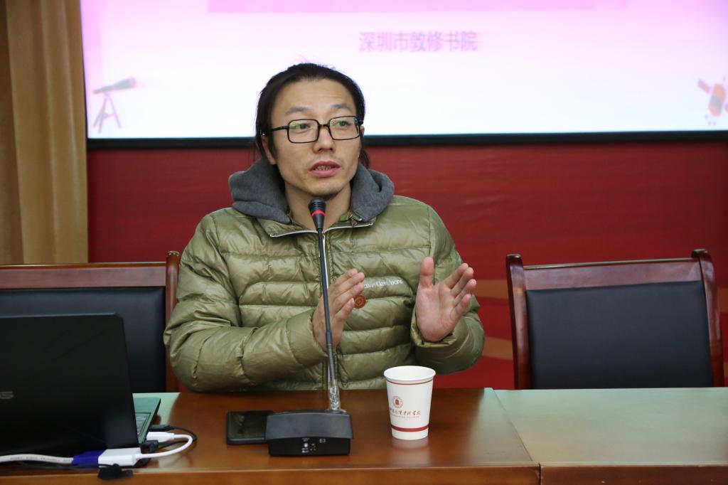 11月22日,中国书法家协会会员、广东敦修书院院长赵小岩在学校大学生活动中心报告厅作了题为《创业之路需要灯塔》的学术报告。美术与设计学院负责人、全体师生代表及学校书法爱好者共370余人参加了报告会,会议由美术与设计学院党总支书记李怡主持。