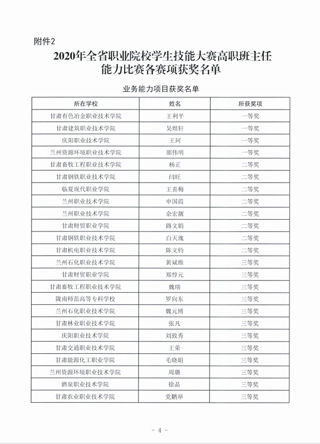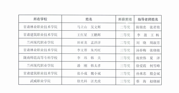日前,甘肃省教育厅、甘肃省人力资源和社会保障厅、甘肃省财政厅、甘肃省卫生健康委员会公布了2020年全省职业院校学生技能大赛获奖名单、班主任能力比赛获奖名单。beat365在该比赛中取得佳绩。