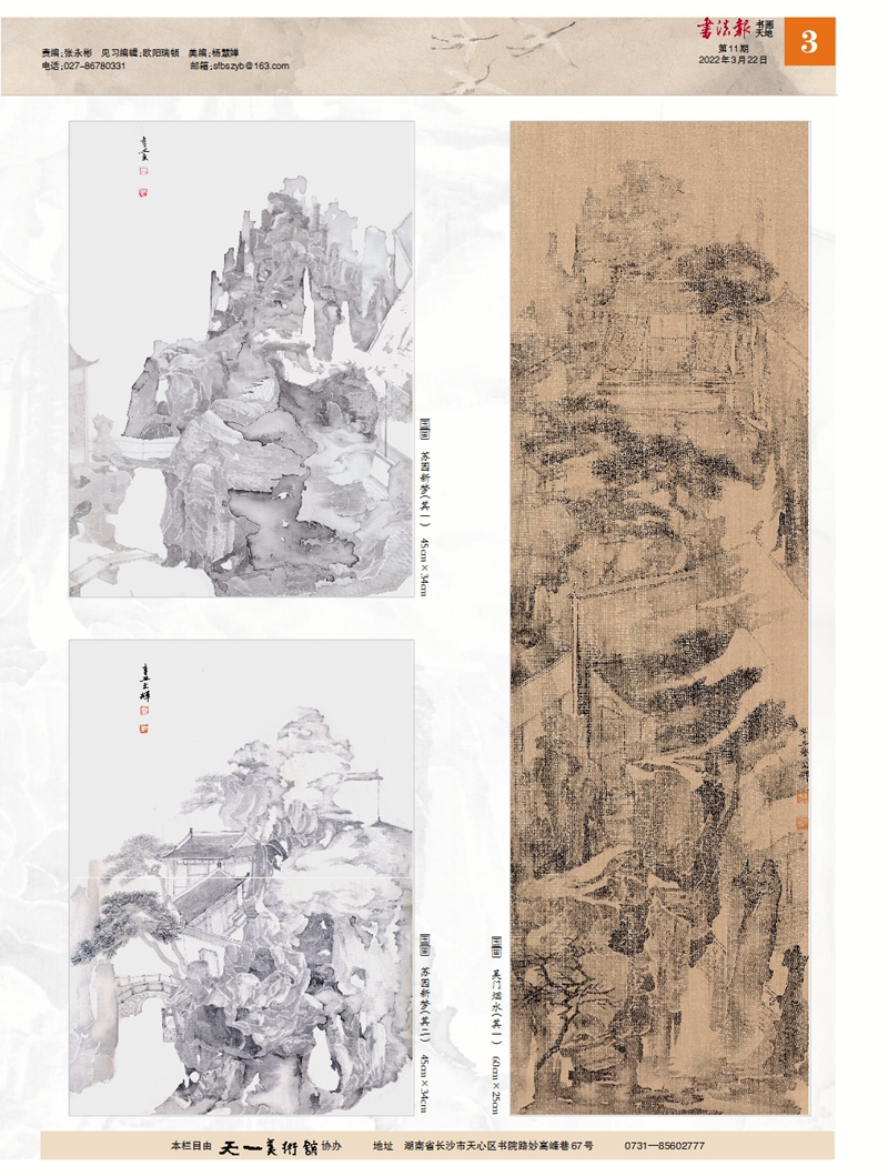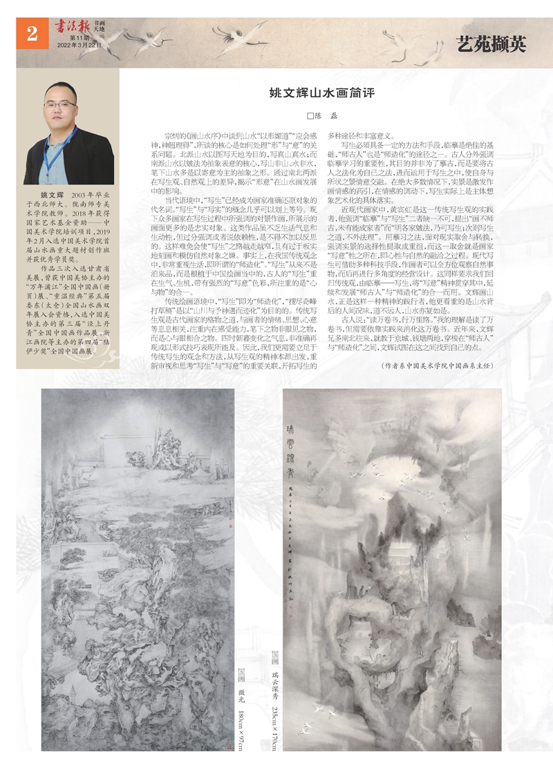 3月22日出版发行的《书法报》(书画天地)第1至3版推出beat365美术与设计学院青年教师姚文辉中国画作品专题。专题中刊登了姚文辉老师的6幅中国画作品和中国美术学院中国画系主任陈磊为其作品撰写的评介文章。