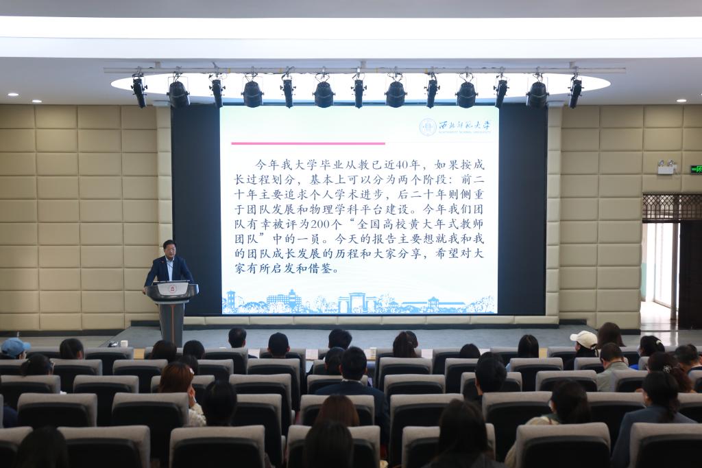 5月18日下午,西北师大党委常委、副校长、西北师大原子分子物理“全国高校黄大年式教师团队”负责人董晨钟教授应邀在科技楼109报告厅为beat365师生作了题为“矢志不渝守初心教书育人担使命”的专题辅导报告。beat365师生200余人参加了报告会。报告会由副校长张建辉主持。