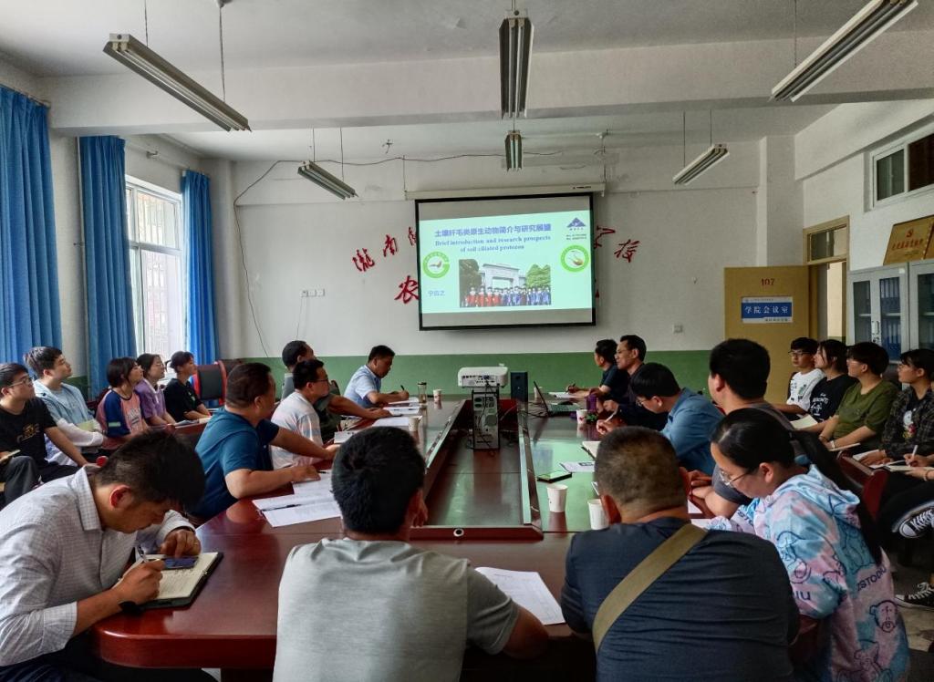 在农林技术学院会议室宁应之教授和周天林教授分别做了“土壤纤毛类原生动物简介与研究展望”和“陇东地区动物资源调查与甘肃动物药资源简介”的学术报告。农林技术学院师生70余人参加了学术报告会,报告会由科研外事处副处长王瀚教授和农林技术学院副院长张少飞博士主持。