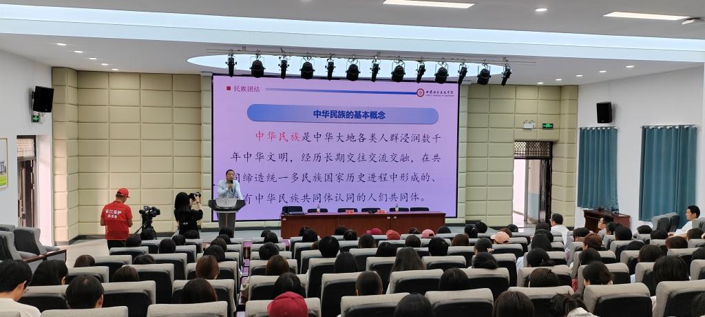 会上,王凯围绕铸牢中华民族共同体意识这一新时代党的民族工作的主线,从树立正确的中华民族历史观、坚定走中国特色解决民族问题的正确道路、做铸牢中华民族共同体意识的忠实践行者、深入全面阐释了铸牢中华民族共同体意识的来龙去脉和重大现实意义,从伟大祖国、共同缔造,伟大梦想团结奋斗,伟大征程强国有我,如意甘肃、共同建设等四个方面,详细解读了统一战线、民族宗教工作等方面的综合知识,引导师生深刻领会铸牢中华民族共同体意识的重要意义,激发爱国热情,增强责任担当。(宣传统战部)