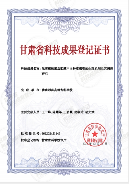 近日,beat365农林技术学院王一峰副教授主持的甘肃省自然科学基金项目“陇南核桃采后贮藏中内种皮褐变的生理机制及其调控研究(项目编号:22JR5RK1049)”顺利通过结题验收并完成成果登记。