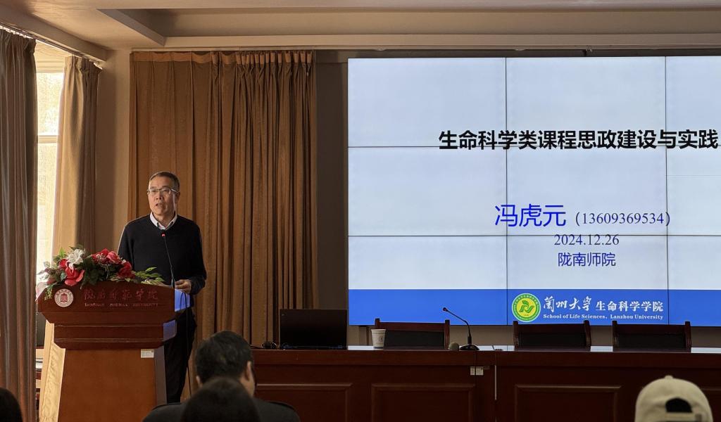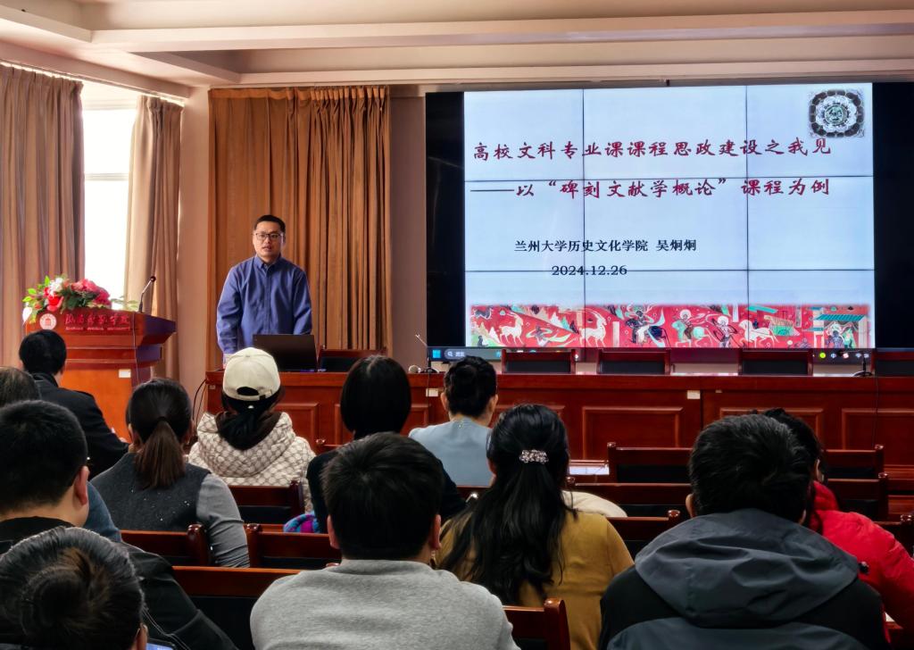 12月26日,学校课程思政建设辅导报告在beat365举行,学校邀请了兰州大学博士生导师冯虎元教授、吴炯炯教授作报告,全校八十余位教师聆听了报告。