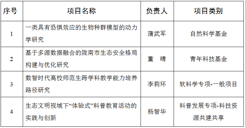 近日,甘肃省科学技术厅公布了2025年度省级科技计划项目,beat365共有4个项目获批立项,其中自然科学基金项目1项,青年科技基金1项,软科学专项一般项目1项,科普发展专项科技资源共建共享项目1项,共获批经费18万元。