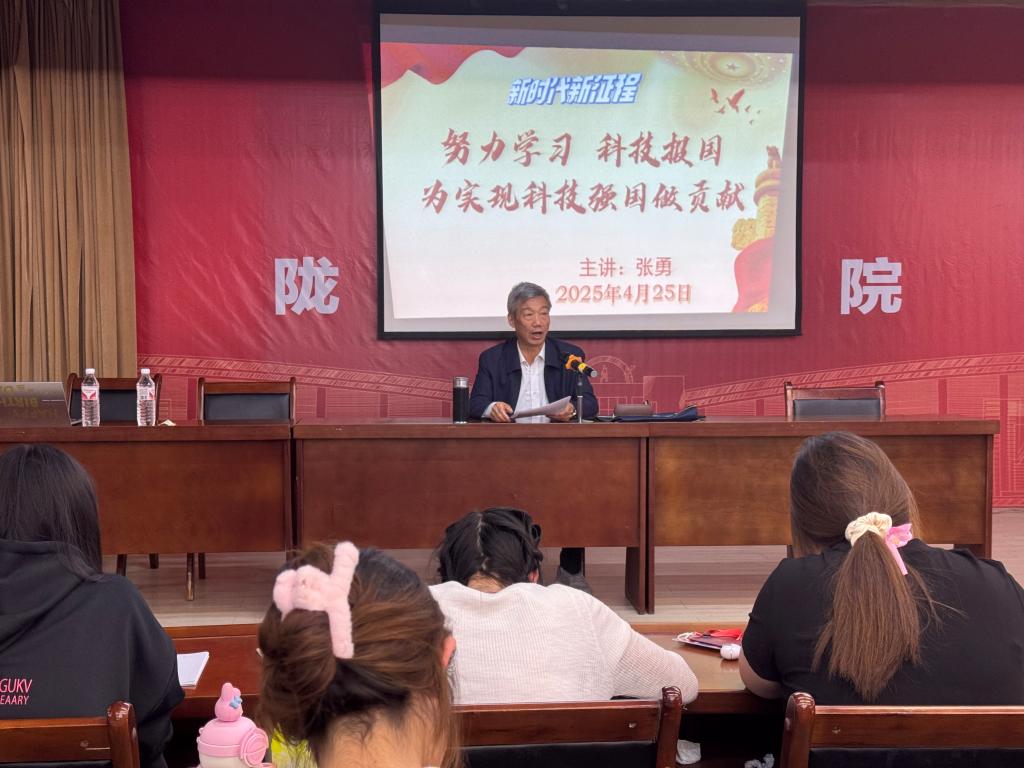 4月25日,学校“五老宣讲团”成员张勇为300多名入党积极分子作了题为“努力学习,科技报国,为实现科技强国做贡献”的宣讲报告。