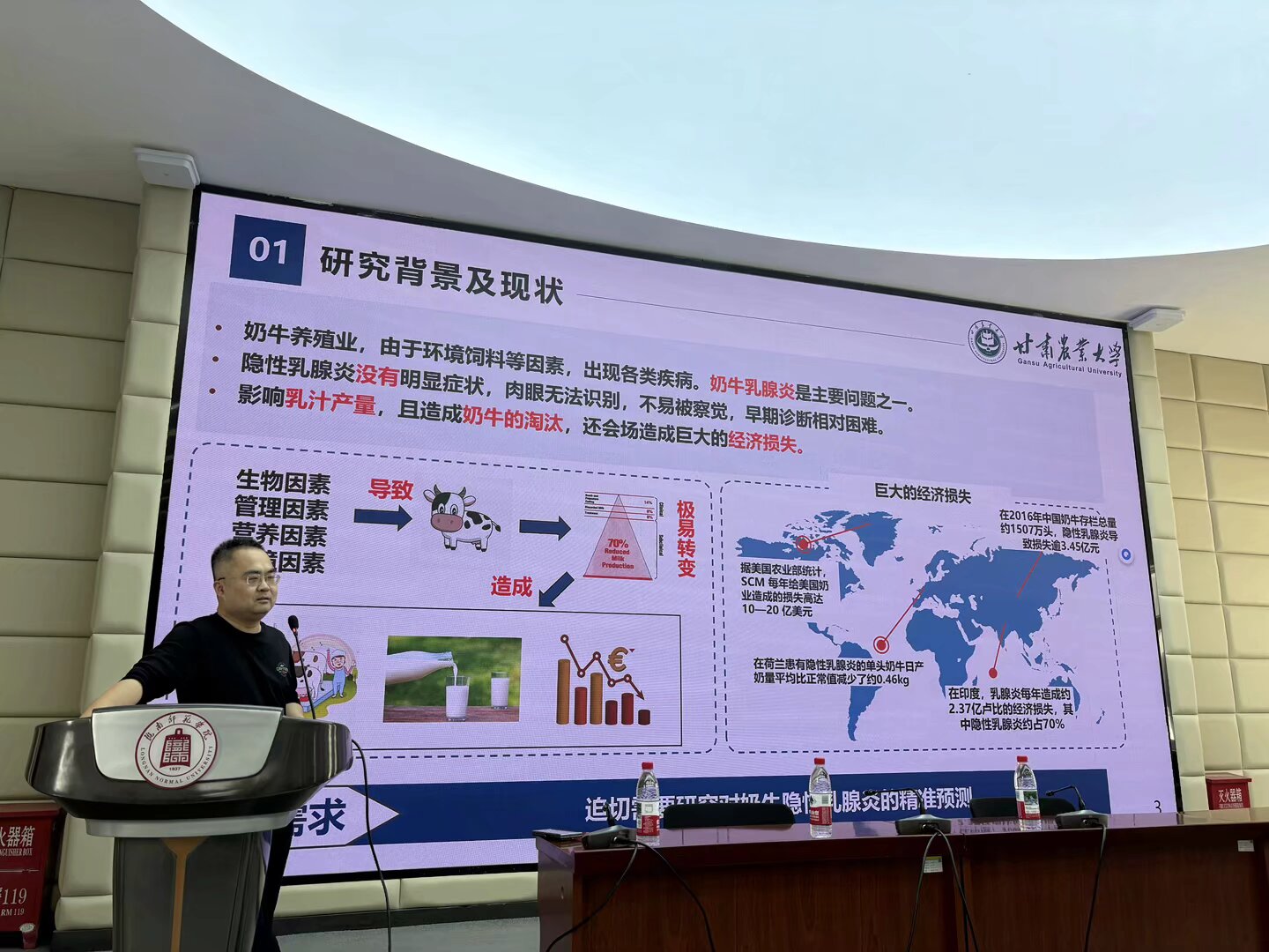 报告围绕奶牛健康监测领域的智能化发展趋势,系统介绍了人工智能技术在畜牧兽医领域的创新应用。代永强从奶牛隐性乳腺炎的防治现状切入,指出该疾病因症状隐蔽、传统检测成本高且滞后,已成为影响牧场经济效益和动物福利的突出问题。他提出,通过机器学习、深度学习等智能优化算法整合奶牛生理数据、环境指标及历史病例,可构建高精度预测模型,实现疾病的早期预警。代永强展示了团队的相关研究成果,其开发的“动态权重优化神经网络模型”引发师生的高度关注。该模型通过融合奶牛产奶量、体细胞数、活动量等实时数据,将隐性乳腺炎的预测准确率提升至92.3%,较传统方法提高近20%。他表示,下一步将推动算法与物联网技术的深度结合,构建覆盖养殖全链条的智能健康管理系统。