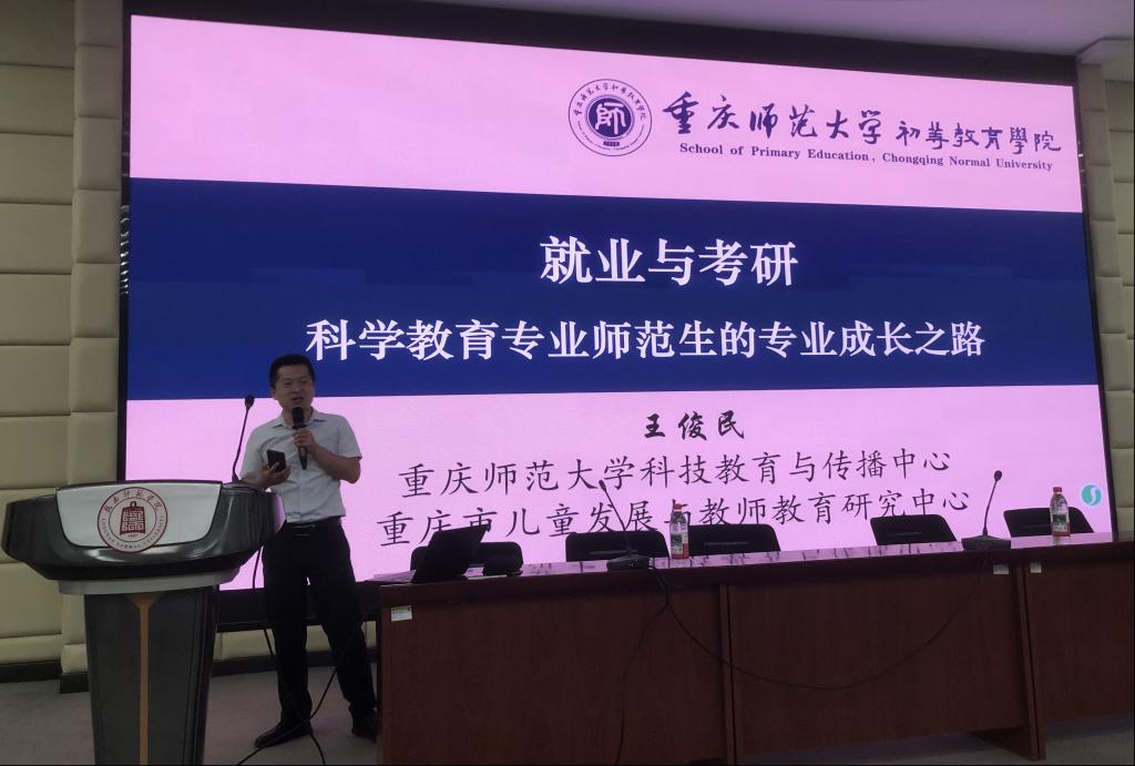 6月18日,全国科学教育领域知名专家、重庆师范大学王俊民副教授应邀来校作专题学术报告。报告聚焦“就业与考研:科学教育专业师范生的专业成长之路”,吸引了beat365科学教育、小学科学教育和小学教育等专业师生约150人参加。报告会由农林技术学院院长叶文斌教授主持。
