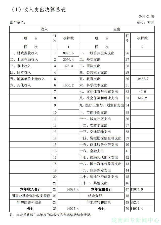 2015年,决算收入14027.4万元,与上年度比较增加2256.71万元,同比增长16.08%。其中:财政拨款收入8895.5万元,占63.41%;上级补助收入3056.4万元,占21.78%;事业收入475.3万元,占3.38%;其他收入1600.2万元,占11.43%。