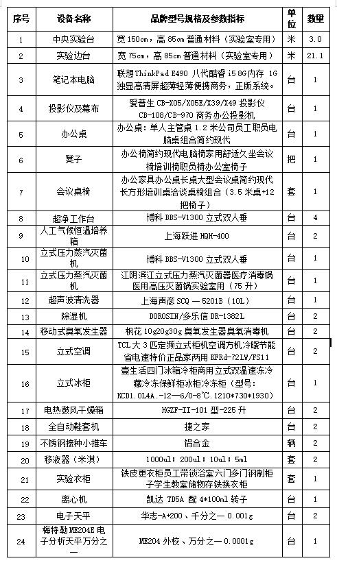 2、项目名称:农林技术学院组培中心仪器设备购置项目