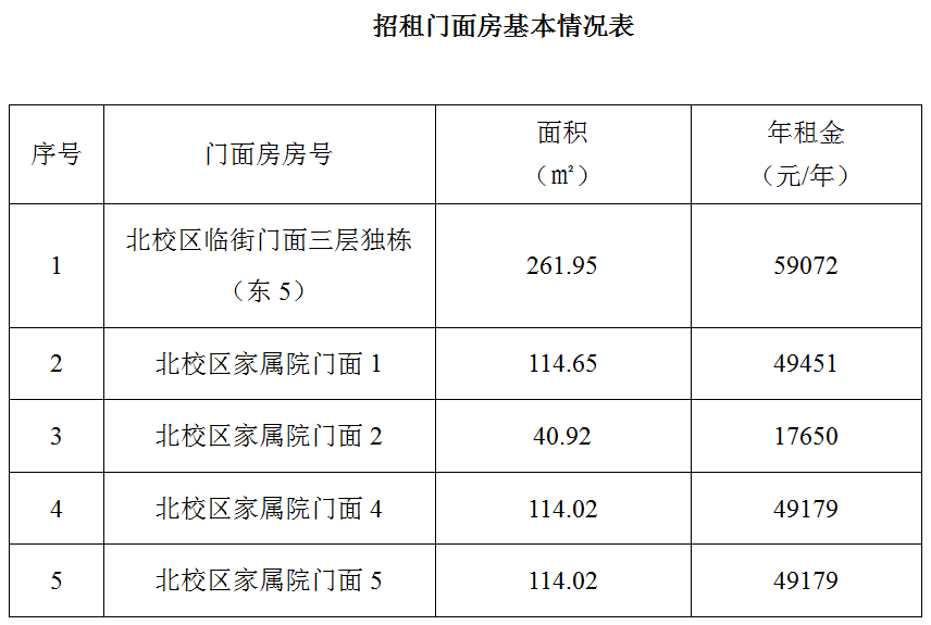 陇南师范高等专科学校现有部分门面房面向社会公开招租,具体情况如下: